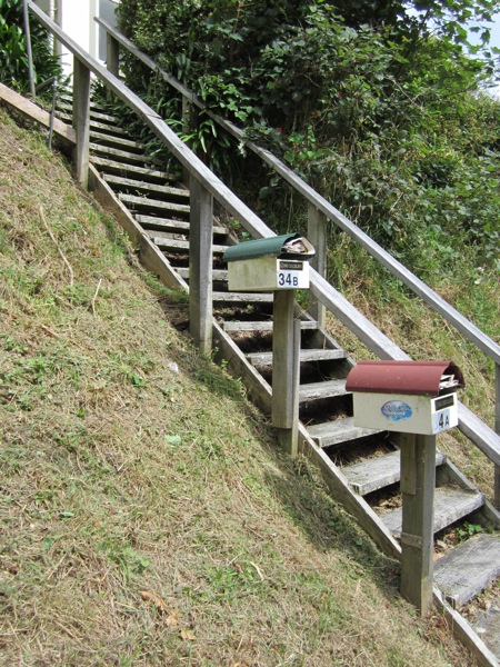 Alice helped me get settled then we ran off to join the other IFSA students to run to the grocery store. It was at this very moment that I got the first real shock since I'd been in New Zealand. I don't think it really counts as culture shock. Maybe more like geography shock? I live on "Steep Hill" Terrace (the name has been changed), which stuck right between two very tall, very steep hills. That's why I have to climb 60 steps to get to my house everyday. But my house is only half-way up the hill. So as Alice led myself, my next door neighbor (who is one of the people that took some of the pictures in my last post), and another IFSA student up the hill, and we found that we had to climb 115 additional stairs to get up the hill (my neighbor counted). Not just regular stairs, mind you. Tall, steep stairs that slant downwards (for some strange reason).